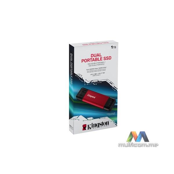 Kingston Dual Portable 1TB SSD disk │ Prenosivost i kompaktan dizajn │ USB 3.2 Gen 21 │ Konektori za USB Type-A i Type-C │ Brzina čitanja do 1,050MB/s │ Brzina pisanja do 950MB/s
