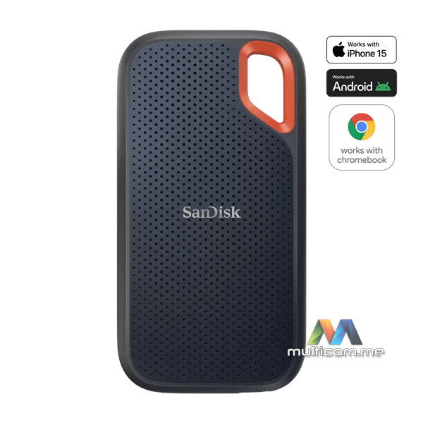 SanDisk Extreme Portable 2TB SSD │ Brzina čitanja do 1050MB/s │ Brzina pisanja do 1000MB/s │ Otpornost na vodu i prašinu IP65 │ Praktična karabiner petlja za nošenje │ Zaštita lozinkom sa 256-bitnom AES enkripcijom