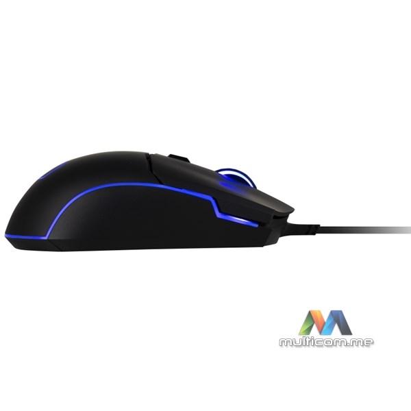 Karakteristike | Povezivost: Žični Interfejs: USB Tip senzora: Pixart PWM 3050 Podesivost rezolucije: Podesivost u 5 nivoa Rezolucija: Podesiva od 400dpi - 6.000dpi Dodatni tasteri: 6 tastera Odziv: 1.000Hz Ubrzanje: 20G (maksimalno) Dodatne funkcije: RGB Osvetljenje Napomena: 16kB interne memorije za čuvanje podešavanja | |
