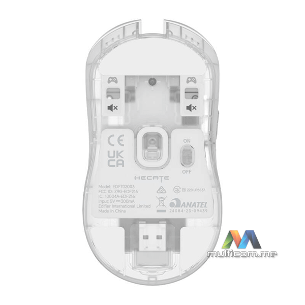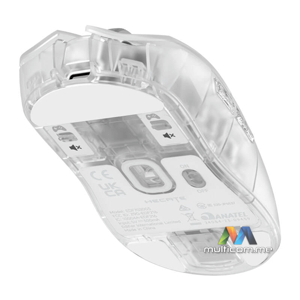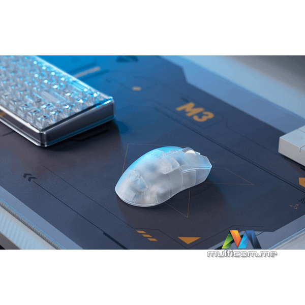 HECATE by Edifier G3M PRO Transparent gaming miš │ Senzor: PAW3395 │ DPI: do 26000 │ IPS: 650 │ ACC: 50G │ Osvježavanje: do 1000 Hz │ Autonomija: ~70 h │ Baterija: 300 mAh │ Težina: 63 g │ Povezivanje: 2.4G, Bluetooth, USB-C │ Prekidači: HUANO, ~90M klikova