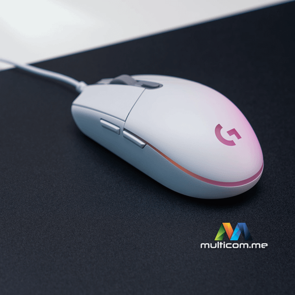 Logitech G203 White gaming miš │ RGB osvjetljenje │ 8000 DPI │ 6 tastera │ Dužina kabla: 2,1m