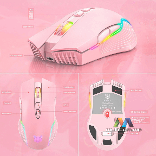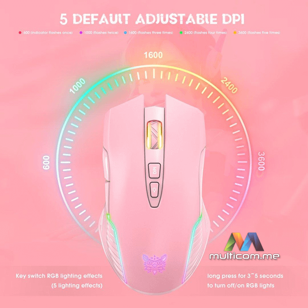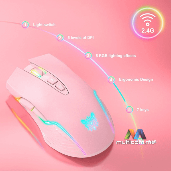 ONIKUMA CW905 Pink gaming miš │ 6 DPI nivoa │ 7 programabilnih tastera │ RGB osvetljenje (6 boja) │ Ergonomski dizajn │ Antiklizna površina │ Plug & Play