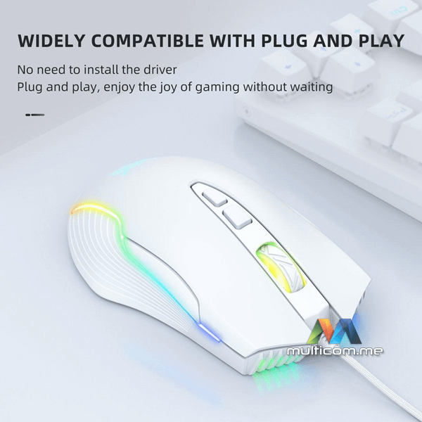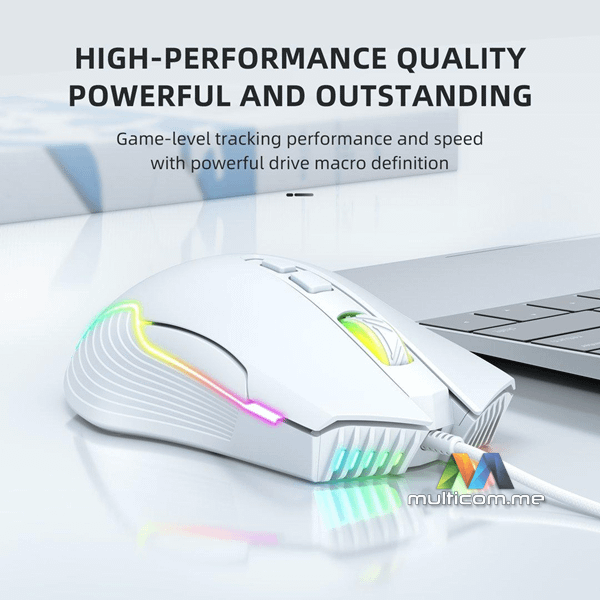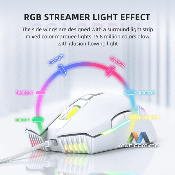 ONIKUMA CW905 White gaming miš │ 6 DPI nivoa │ 7 programabilnih tastera │ RGB osvetljenje (6 boja) │ Ergonomski dizajn │ Antiklizna površina │ Plug & Play