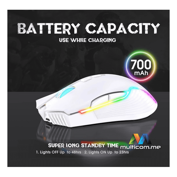 Zaboravi na prekid igre zbog prazne baterije! Sa do 23 sata rada uz uključeno pozadinsko osvjetljenje, ili do 48 sati bez njega, miš ti omogućava pun fokus na igru. Baterija kapaciteta 700 mAh osigurava dugotrajnu upotrebu, a miš automatski prelazi u stanje mirovanja nakon jednog minuta neaktivnosti kako bi štedio energiju.
