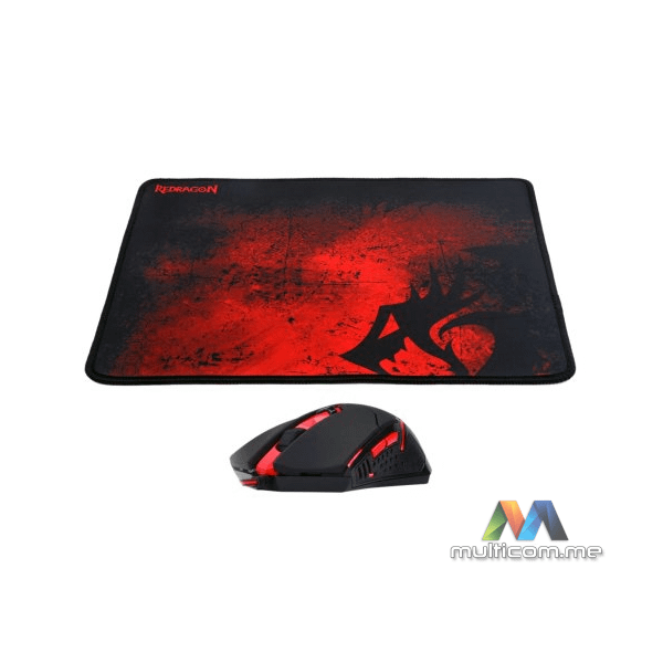 Redragon M601WL-BA COMBO 2-u-1 komplet miš i podloga │ Bežično povezivanje 2,4 GHz │ Optički senzor │ DPI od 800 do 2400 │ 6 programabilnih tipki │ Dimenzije podloge 33 x 26 x 0,5 cm