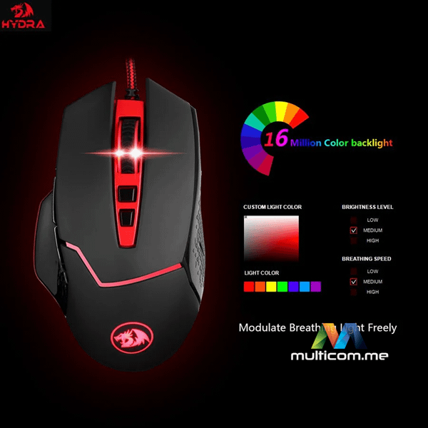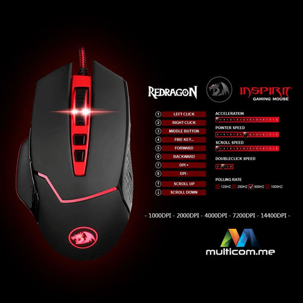 REDRAGON INSPIRIT M907 gaming miš │ 14400 DPI │ 8 programabilnih dugmadi │ RGB pozadinsko osvjetljenje │ 1.2m USB kabl