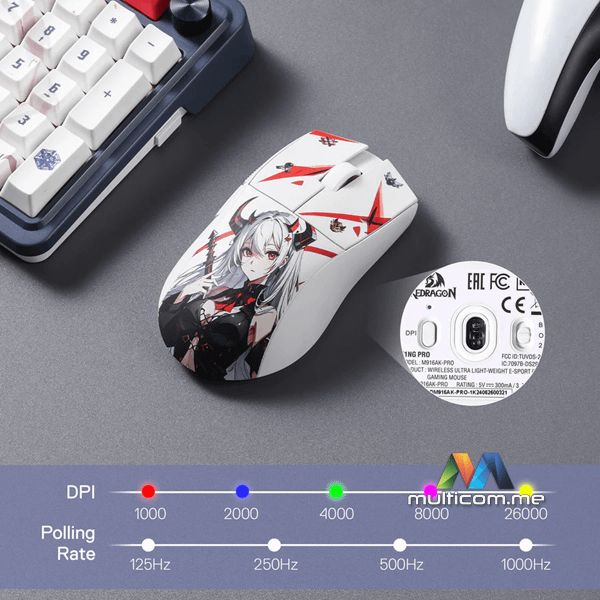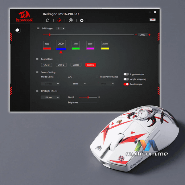 5 DPI nivoa: Lako prebacivanje između 5 redefinisanih DPI nivoa (1000/2000/4000/8000/26000) za različite potrebe igre.