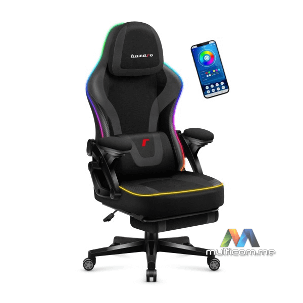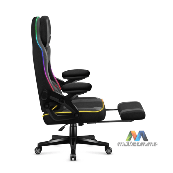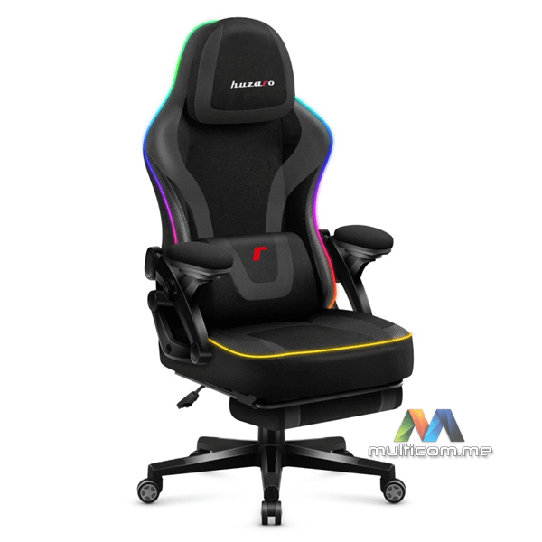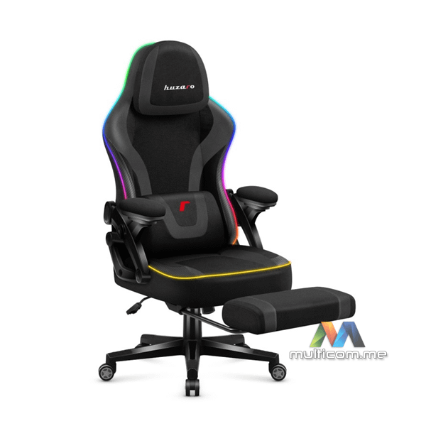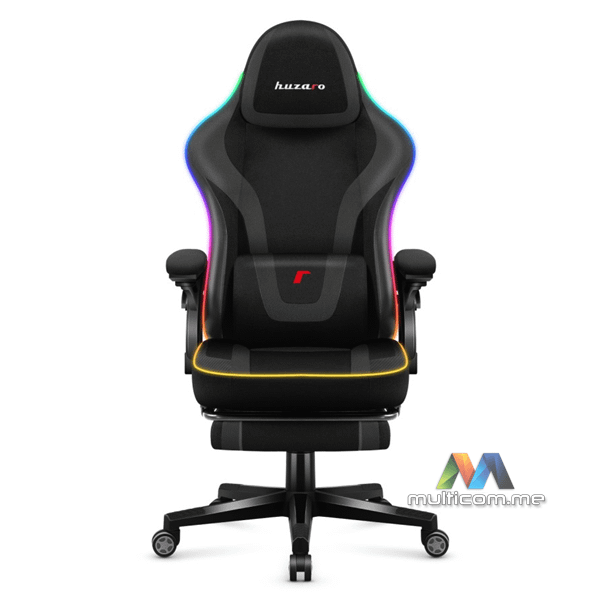 Huzaro Force 4.6 RGB Black Mesh gaming stolica │ RGB osvjetljenje │ Oslonac za noge │ Mekani nasloni za ruke │ Podesivi naslon za glavu │ Jastuci za lumbalni i vratni dio │ Tkanina otporna na oštećenja │ Funkcija ljuljanja naslona