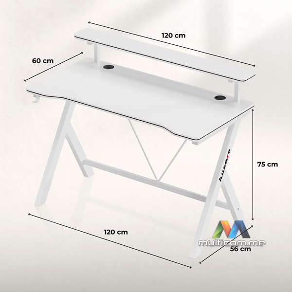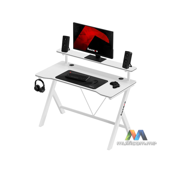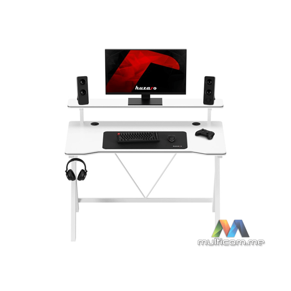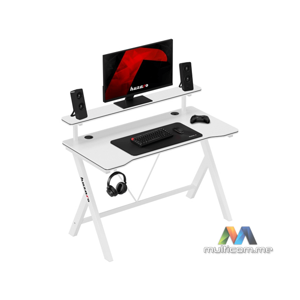 Huzaro HERO 1.9 WHITE gaming sto │ Ploča od 120 cm │ Dodatna polica │ Sistem za upravljanje kablovima │ Karbonska obloga otporna na ogrebotine │ Čvrst čelični okvir │ Nosisvost 75 kg