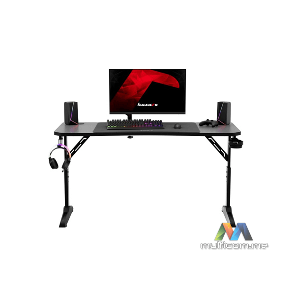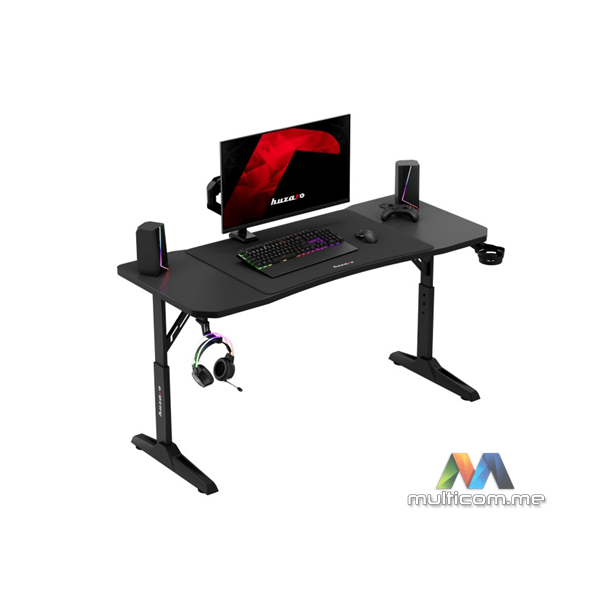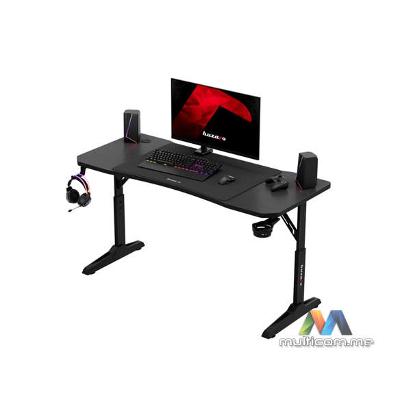 Huzaro HERO 3.6 BLACK gaming sto │ Radna površina 140 × 60 cm │ CARBON premaz │ XXL podloga za miša uključena │ Ojačana čelična konstrukcija │ Praktični dodatak za čašu i kuka za slušalice