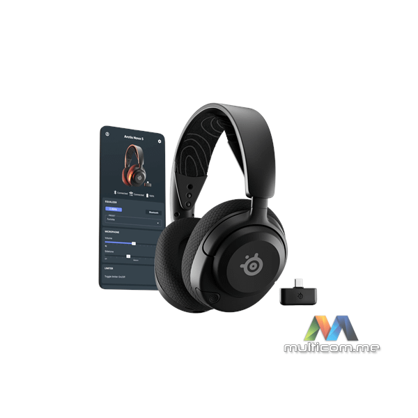 SteelSeries Arctis Nova 5 Black gaming slušalice │ Baterija traje 60 sati │ QuickSwitch Wireless tehnologij (2.4GHz i Bluetooth) │ Neodimijumski magnetski drajveri │ ClearCast 2.X mikrofon