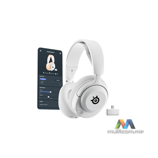 SteelSeries Arctis Nova 5 White gaming slušalice │ Baterija traje 60 sati │ QuickSwitch Wireless tehnologij (2.4GHz i Bluetooth) │ Neodimijumski magnetski drajveri │ ClearCast 2.X mikrofon