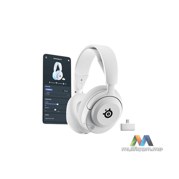 SteelSeries Arctis Nova 5P Wireless White bežične gaming slušalice │ 100+ audio podešavanja za igre │ Trajanje baterije do 60h │ USB-C brzo punjenje │ 2.4GHz i Bluetooth QuickSwitch │ Neodimijumski magnetni drajveri │ ClearCast 2.X mikrofon │ USB-C wireless dongl