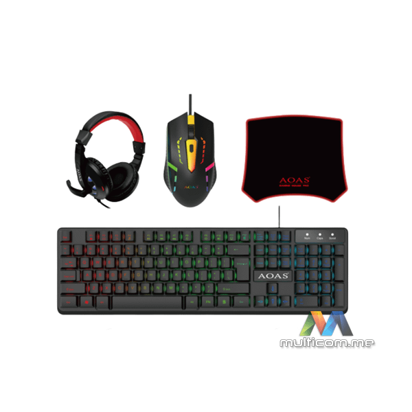 AOAS WB-1077 gaming komplet │ USB tip povezivanja │ RGB osvetljenje │ Tastatura + Miš + Podloga + Slušalice