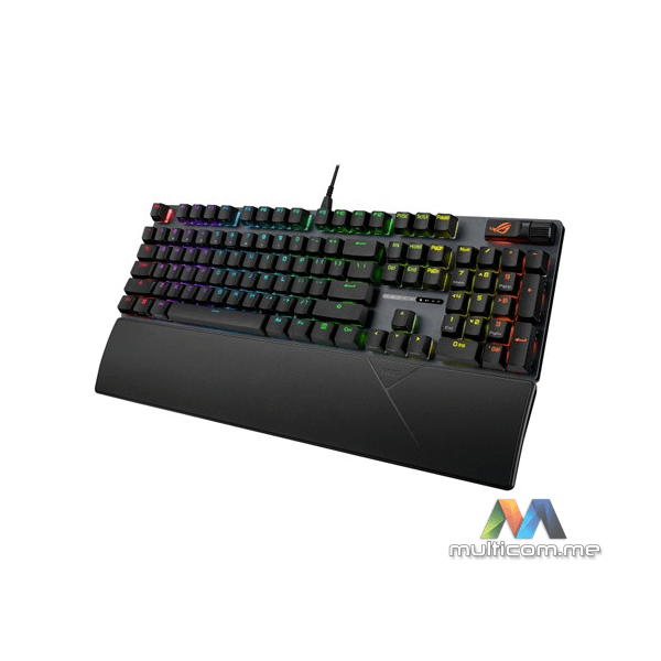 ROG Strix Scope II X gaming tastatura │ Hot-swappable ROG NX Snow mehanički prekidači V2 │ Multifunkcionalne kontrole medija │ Pjena za prigušivanje zvuka │ Izdržljivi PBT/UV-obloženi tasteri │ Ergonomski dizajn sa tri nagiba │ Odvojivi oslonac za zglobove │ RGB osvjetljenje