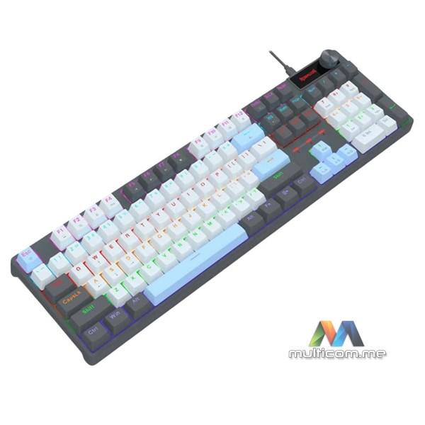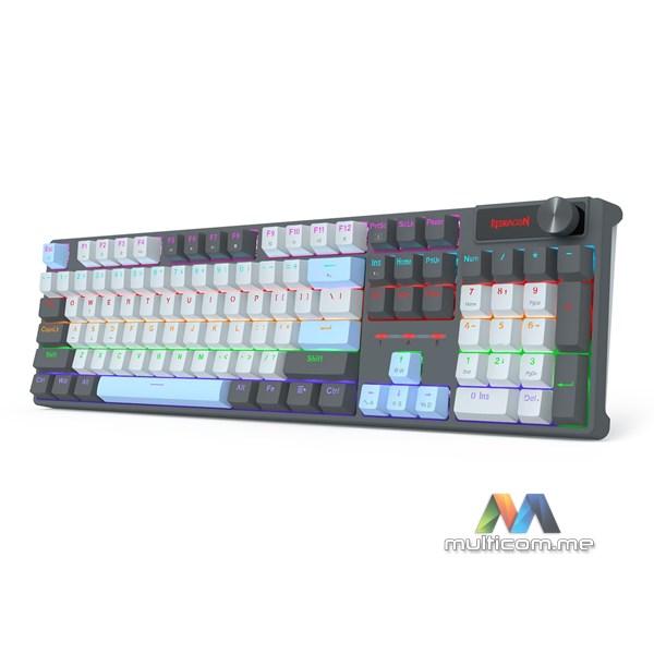 Redragon Caesura K718 RGB Žičana tastatura / Mehanički Red Linear prekidači / Hot-Swap podrška / Multimedijalni i dodatni „knob“ taster / Mogućnost podešavanja visine