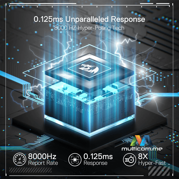 8K polling rate: 8000Hz učestanost osigurava ultra-nisku latenciju od samo 0.125ms – reakcije bez kašnjenja u ključnim momentima