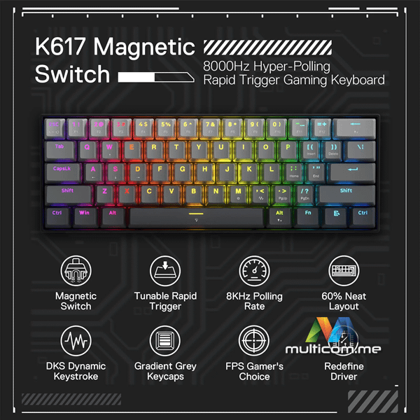 Redragon FIZZ K617 (Magnetic Hall Effect Keyboard) gaming tastatura │ 60% raspored │ 61 taster │ 8K polling │ Hall magnetski prekidači │ RGB osvjetljenje │ Rapid Trigger tehnologija