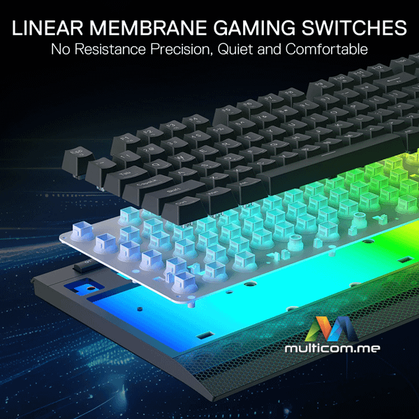 26 anti-ghost tastera i posvećene medijske kontrole: Omogućava istovremeni rad 26 tastera za brze reakcije i kontrolu multimedije direktno sa tastature.