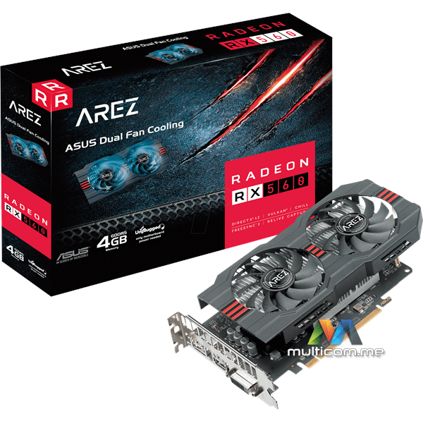 ASUS AREZ-RX560-4G-EVO, AMD Radeon, RX560, PCIe 3.0 x16, 4096 MB, GDDR5, 128-bit, Radni takt GPU 1149 MHz, Takt memorije 6000 MHz, DVI-D, 1x Display port, 1x HDMI 2.0, 5120x2880 - 90YV0AHF-M0NA00