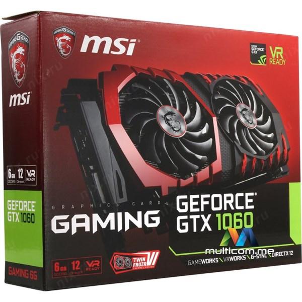 MSI GeForce GTX 1060 GAMING 6G, NVIDIA GeForce, GTX 1060, PCIe 3.0 x16, 6144 MB, GDDR5, 192-bit, Radni takt GPU 1531 MHz, Takt memorije 8008 MHz, DVI-D, 3x Display port, 2x HDMI 2.0, 4096x2160 - 912-V328-012