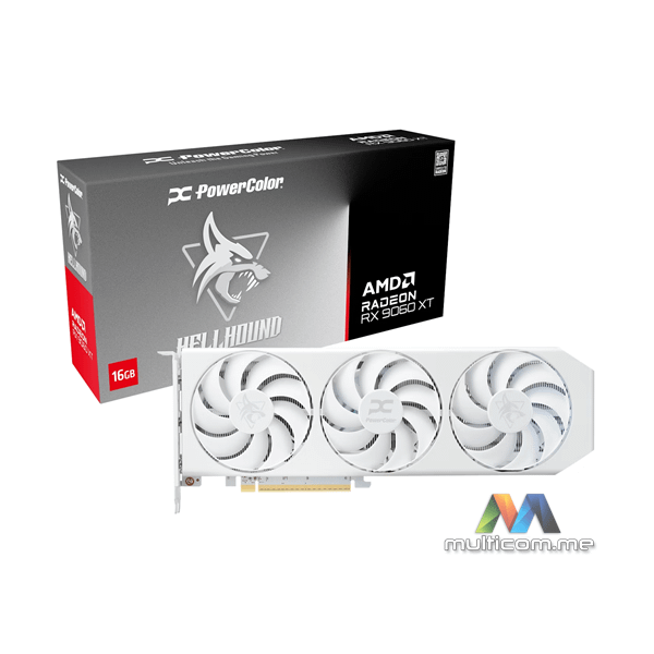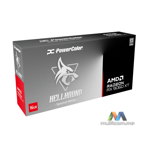 PowerColor Hellhound Spectral White RX 9060 XT 16GB GDDR6 grafička kartica │ 16GB GDDR6 128-bit │ Dvostruki BIOS (OC / Tihi) │ Ojačana metalna zadnja ploča