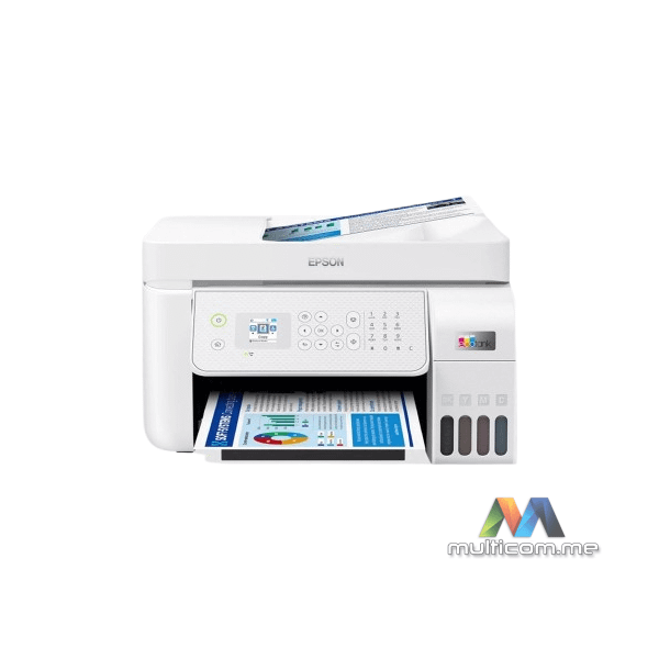 Epson EcoTank L5316 MFP inkjet štampač │ Tehnologija štampe: Inkjet │ Štampa: U boji │ Rezolucija: 5760 x 1440 DPI │ Brzina štampe: 33 ppm (crno), 15 ppm (boja), 10 ipm (ISO mono), 5 ipm (ISO boja) │ Kopiranje: U boji, 1200 x 2400 DPI │ Skeniranje: CIS, ravni + ADF, 1200 x 2400 DPI │ Faks: U boji, 33.6 Kbit/s, memorija 100 str. │ Kapacitet: Ulaz 100 str., Izlaz 30 str. │ Wi-Fi i LAN │ Ekran: LCD │ Mobilna štampa: AirPrint, Epson iPrint itd.