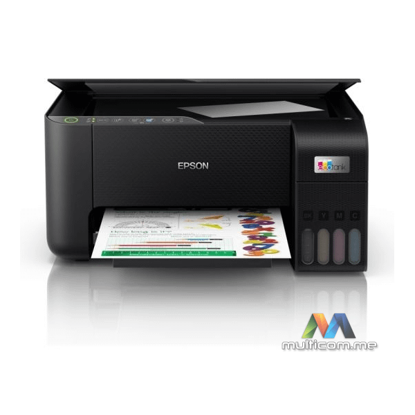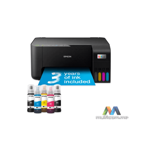 EPSON EcoTank L3270 inkjet MFP štampač (C11CJ67434) │ Tehnologija: Epson Micro Piezo™, 4 boje │ Rezolucija ispisa: 5.760 × 1.440 dpi │ Brzina ispisa: 10 str/min (monokrom), 5 str/min (boja) │ Brzina skeniranja: 11 sekundi (crno-bijelo), 28 sekundi (boja) │ Priključci: USB, WiFi, Wi-Fi Direct │ Dimenzije: 375 × 347 × 179 mm │ Težina: 3,9 kg │ Iskoristivost tinte: Crna 8.100 stranica, boja 6.500 stranica │ Kompatibilni OS: Windows, Mac OS