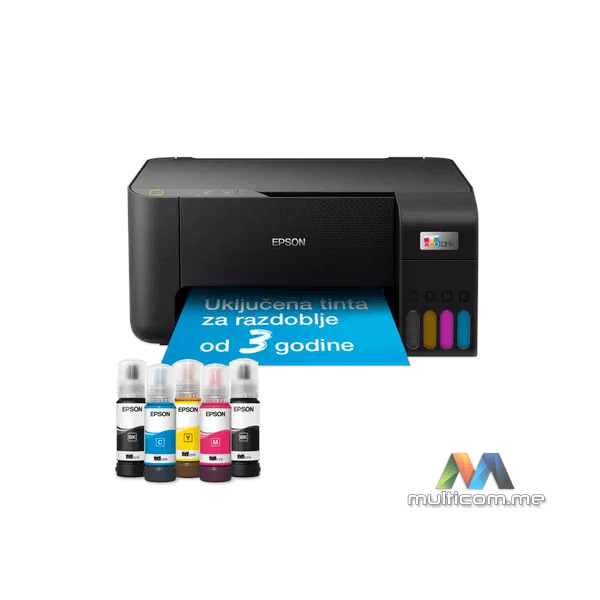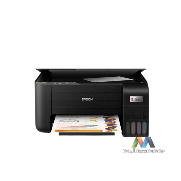 EPSON EcoTank L3230 inkjet MFP štampač (C11CJ68407) │ Tehnologija: Epson Micro Piezo™ glava pisača │ Ispis: 4 boje, 5.760 x 1.440 dpi, ISO brzina 10 str/min crno-bijelo, 5 str/min u boji │ Skeniranje: CIS senzor, 600 x 1.200 dpi │ Upravljanje papirom: Duplex ručno, formati A4, A5, 10x15 cm │ Dimenzije: 375 x 347 x 179 mm, težina 3,9 kg │ Priključci: USB