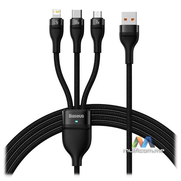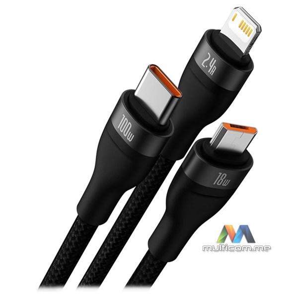 Baseus 3in1 USB cable Flash Series, USB-C + micro USB + Lightning, 100W, 1.2m (black)