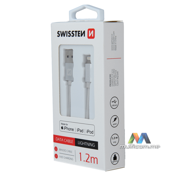 Swissten Textile MFi USB/Lightning 1.2m SILVER kabl