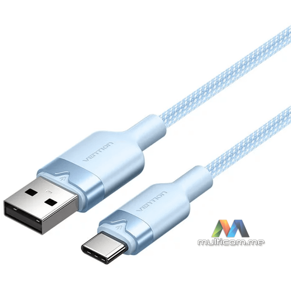 Vention USB-A / USB-C 2m Blue kabl │ Dužina 2m │ Maksimalna struja 3 A │ Brzina prenosa podataka do 480 Mb/s │ PVC i aluminijumsko kućište
