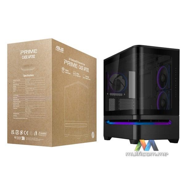 ASUS PRIME AP202 ARGB gaming kućište │ mATX veličina kućišta │ Podrška za GPU do 420mm │ Zakrivljeni kaljeni stakleni panel │ Integrisana ARGB rasvjeta sa Aura Sync podrškom