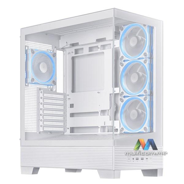 ASUS A31 Plus TG ARGB WHITE gaming kućište │ Podrška za skrivene konektore (BTF) │ Panoramski dizajn sa panelima od kaljenog stakla │ Baza pod uglom od 8° │ 4x ARGB ventilatora