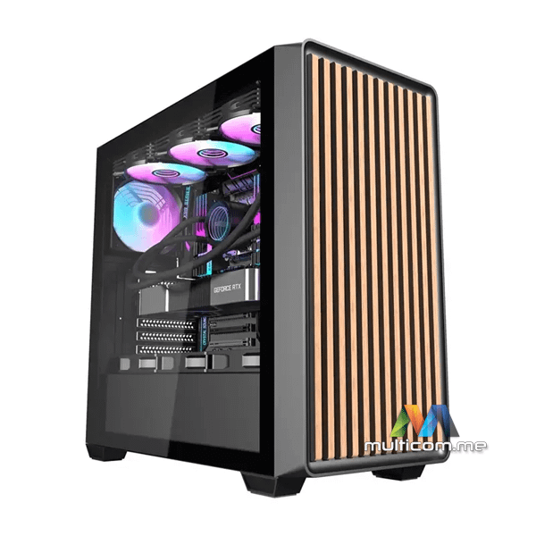 Darkflash DS900WD gaming kućište │ Dizajn sa kaljenim staklom i drvenom prednjom stranom │ Montaža do 10 ventilatora │ Uključena 4 ventilatora │ Kompatibilnost sa ATX, M-ATX i ITX matičnim pločama