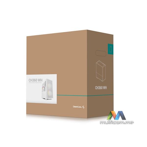 DEEPCOOL CH360 WH gaming kućište │ 2x 140mm ARGB ventilatora │ Hibridni bočni panel od kaljenog stakla │ Mogućnost radijatora od 360mm │ Type-C i USB 3.0 port