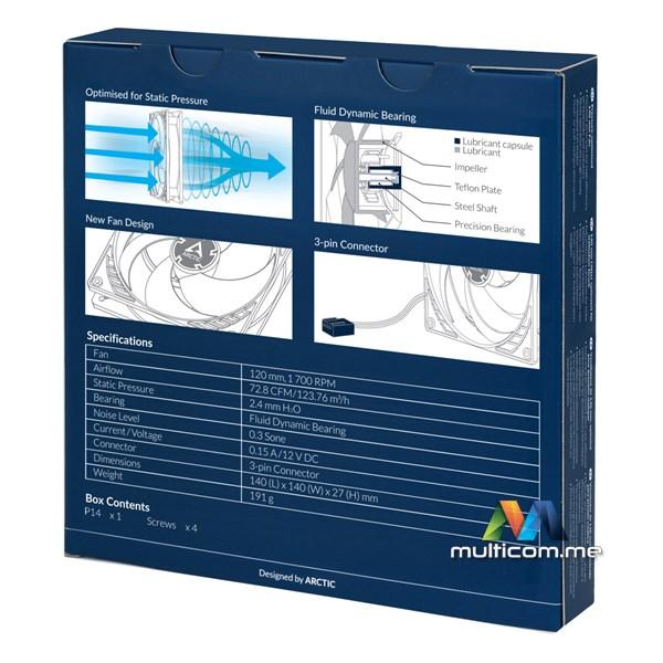 ARCTIC P14 kuler (ACFAN00123A) │ 140mm prečnik │ Visokokvalitetni ležaj │ Dvosmjerna montaža │ Tiho hlađenje