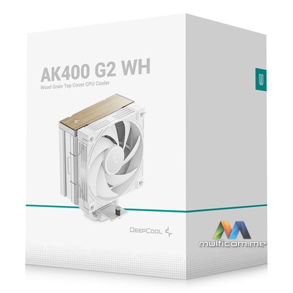 DeepCool AK400 G2 WH kuler za procesor │ 4 napredne bakarne cijevi za toplotu │ Poklopac sa teksturom drveta │ Core Touch Technology │ 63.4 CFM