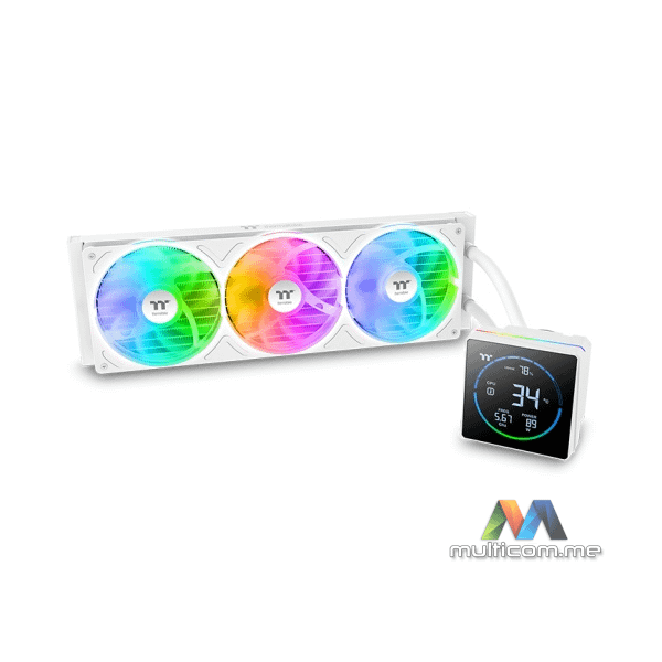Thermaltake TH360-S V3 ARGB Sync vodeno hlađenje │ Elegantna kvadratna glava pumpe sa LCD ekranom │ 2500 RPM ARGB ventilatori │ 360mm PWM modul ventilatora