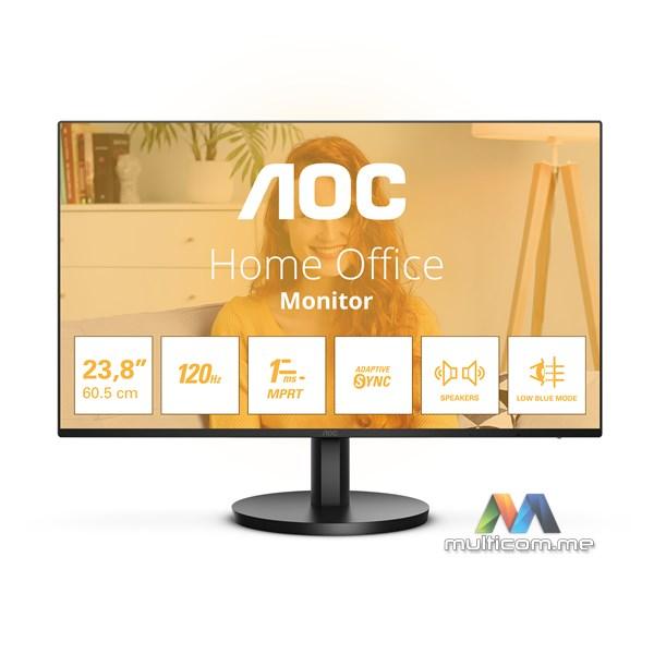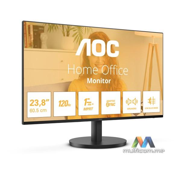 AOC 24B3QA2 monitor │ 23.8 inča IPS ekran │ Rezolucija 1920x1080 │ Osvježenje 120Hz │ Odziv 1ms │ HDMI, DP, VGA priključci │ Ugrađeni zvučnici 2x2W