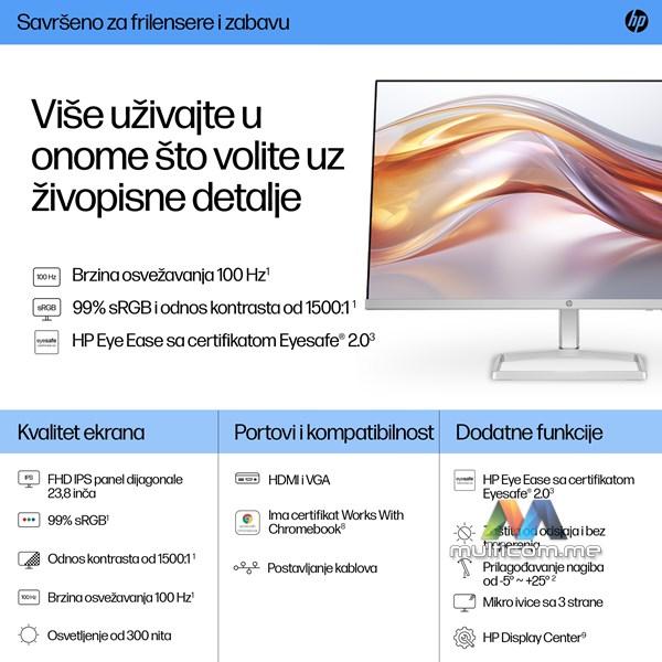HP S5 524sf 94C17AA monitor │ Dijagonala ekrana: 60,5 cm (23.8") │ Rezolucija: 1920 x 1080 piksela │ Tip ekrana: IPS │ Maksimalna učestalost osvežavanja: 100 Hz │ Vreme odziva: 5 ms │ HDMI / VGA