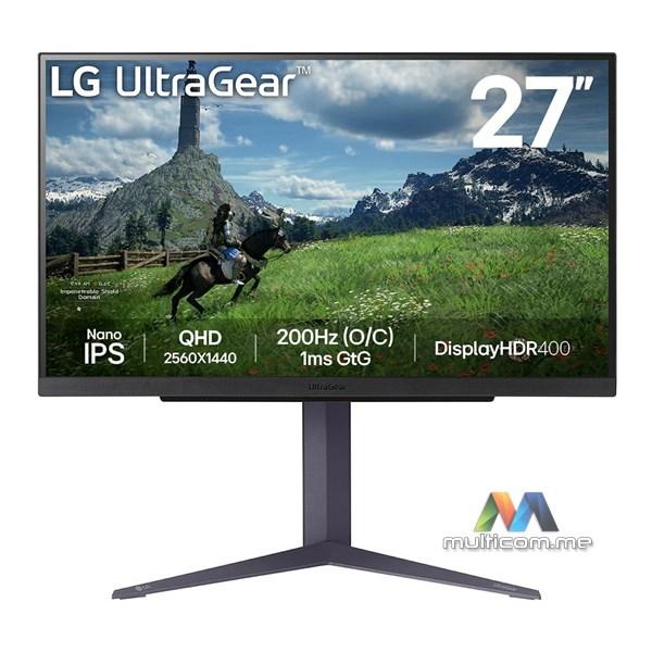 LG UltraGear 27GS85Q-B monitor │ 27" dijagonala │ 2560 x 1440 rezolucija │ Nano IPS ekran │ 1 ms odziv │ 200 Hz osvežavanje │NVIDIA G-SYNC kompatibilan │ AMD FreeSync │ HDMI x2 / DisplayPort x1