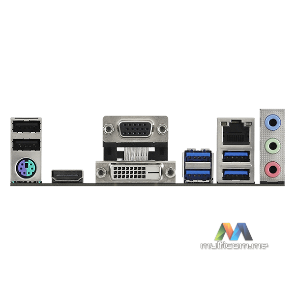 | Zadnji Panel I/O | - 1 x PS/2 Port za Miš/Tastaturu - 1 x D-Sub Port - 1 x DVI-D Port - 1 x HDMI Port - 2 x USB 2.0 Porta (Podržava ESD zaštitu) - 4 x USB 3.2 Gen1 Porta (Podržava ESD zaštitu) - 1 x RJ-45 LAN Port sa LED (ACT/LINK LED i SPEED LED) - HD Audio Priključci: Line in / Prednji Zvučnik / Mikrofon |