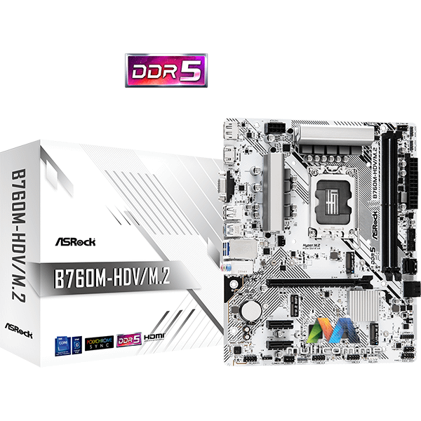 ASRock B760M-HDV/M.2 matična ploča │ Socket LGA1700 │ 2 x DDR5 DIMM modula do 7200+ (OC) │ 4x SATA3 / 2x M.2 slotova