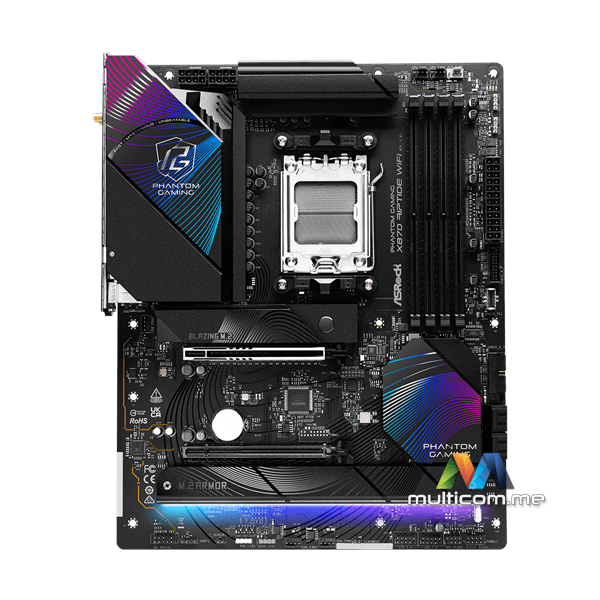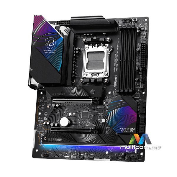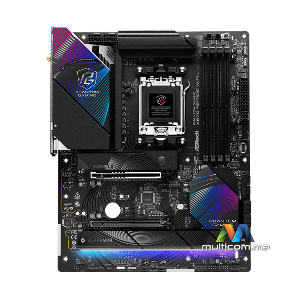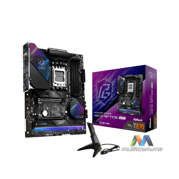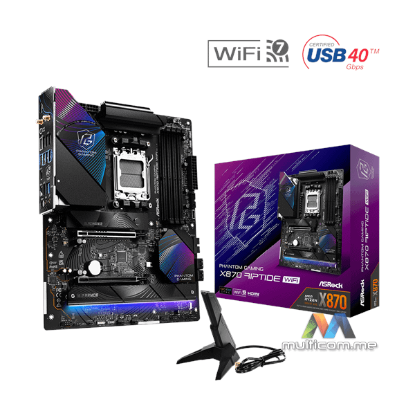 ASRock X870 Riptide WiFi matična ploča │ 14+2+1 dizajn faze napajanja │ 4 x DDR5 DIMM Slotovi │ PCIE Gen5 Blazing M.2 │ Hyper M.2 Gen4 x4 │ Wi-Fi 7 802.11be tehnologija │ AM5 socket │ Poboljšani USB4 Type-C
