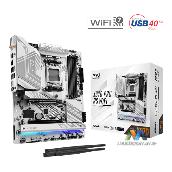 ASRock X870 Pro RS WiFi matična ploča │ AM5 socket │ DDR5 podršla │ PCIe 5.0 │ USB4 │ WiFi 7 │ 2.5G LAN │ 3x M.2 slota │ Nahimic Audio