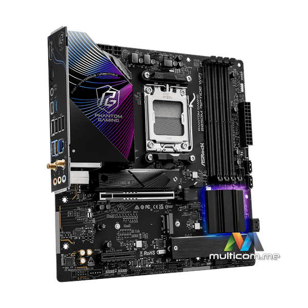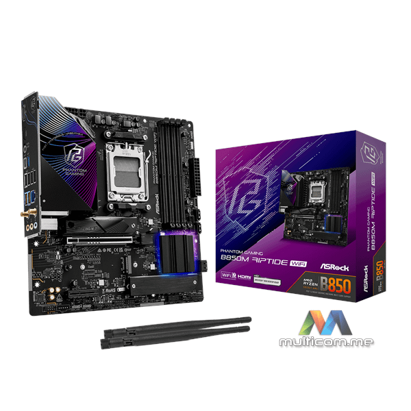 ASRock B850M Riptide WiFi matična ploča │ PCIe Gen5 i M.2 podrška │ 2.5G LAN i Wi-Fi 7 │ AMD Socket AM5 │ 4 x DDR5 DIMM slotovi do 256GB │ Micro ATX Form Factor