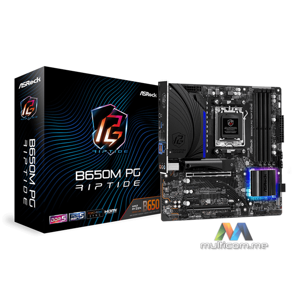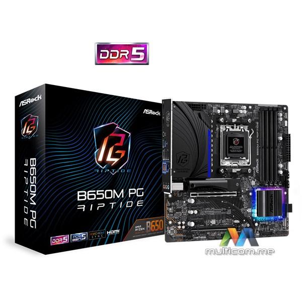 Asrock B650M PG Riptide matična ploča - Socket/Priključak: AM5 - Memorijski slotovi: 4xDDR5 (MAX: 128 GB) - Podržani interfejsi uređaja za skladištenje: M.2, SATA III - Audio kanal: 7.1 kanali - Standard dimenzija matične ploče: mikro ATX - 4710483940835