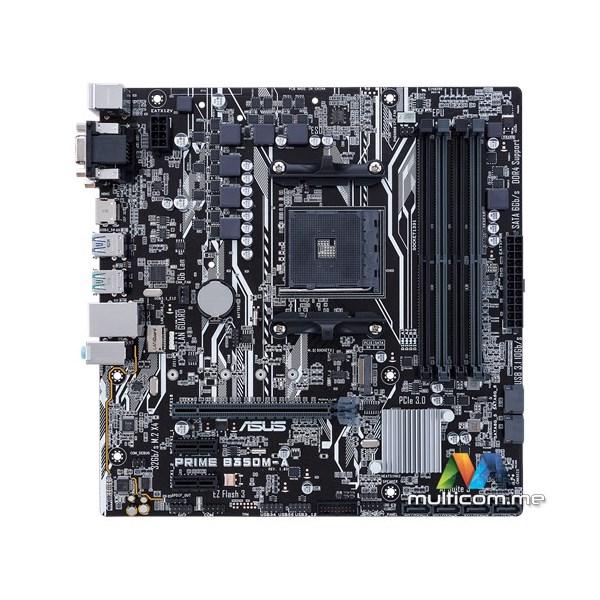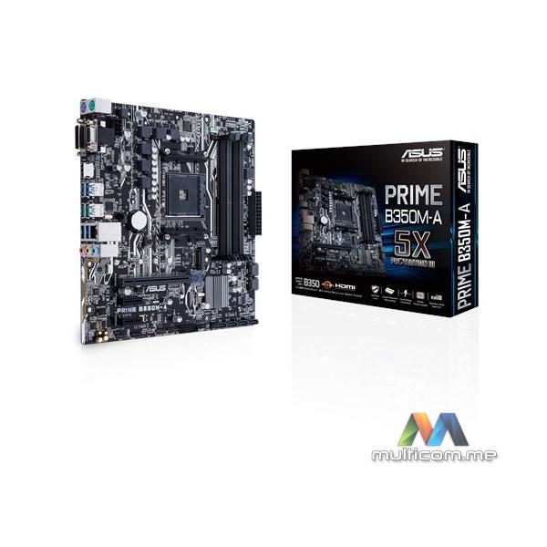 ASUS PRIME B350M-A, AM4, AMD B350, DDR4, Broj utora 4, 2133,2400,2666 MHz, PCIe 3.0 x16 1, PCIe x8 1, PCIe x1 2, SATA3 6, RAID 0,1, 8-kanalni audio, 1x 10/100/1000 Ethernet, USB 3.0 4, USB 2.0 2, mATX, M.2 1, USB 3.1 2