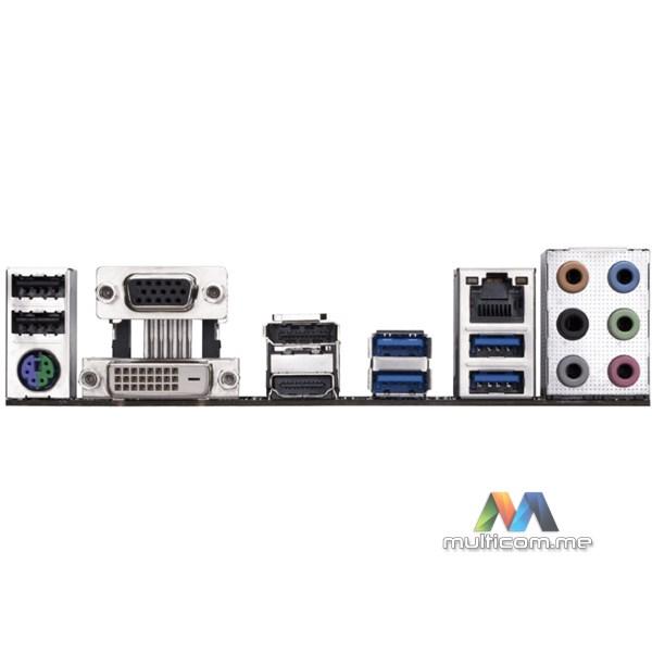 | Priključci na zadnjem panelu | DisplayPort priključci: 1x DisplayPort HDMI priključci: 1x HDMI DVI priključci: 1x DVI-D Dual Link VGA D-sub: 1 PS/2: 1 (tastatura ili miš) Ukupno USB priključaka: 6 USB 3.1 priključci: 4 USB 2.0 priključci: 2 RJ-45 (LAN): 1 Audio: 6x 3.5mm | |